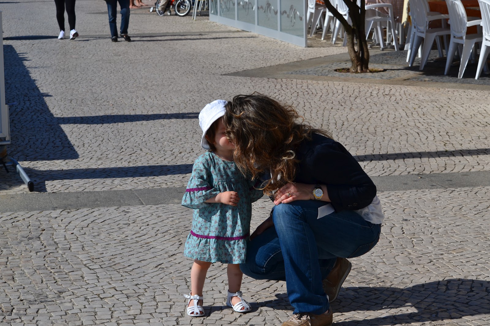 Adoro ver os sorrisos que a Maria deixa nos outros. Enquanto caminha, corre, salta, fala, ri, admira, ela também cumprimenta, quer conheça ou não. Sorri e diz muitas vezes "Oiá" e quando não respondem ela diz mais alto "Oiáaaaaa" e é muito agradável ver os sorrisos que ela consegue arrancar nas outras pessoas. Acho que por momentos, todos os que se cruzam com ela se esquecem da Troika, dos dias mais difíceis e percebem que não há nada mais feliz do que um sorriso espontâneo de uma criança.